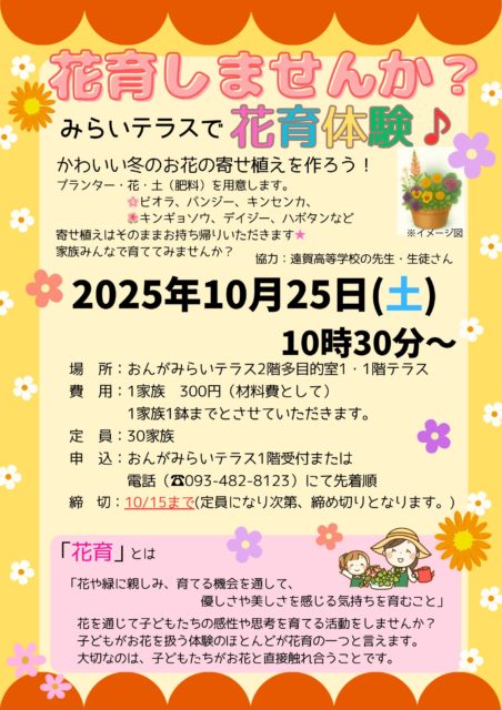 10月25日(土) みらいテラスで家族で花育しませんか?